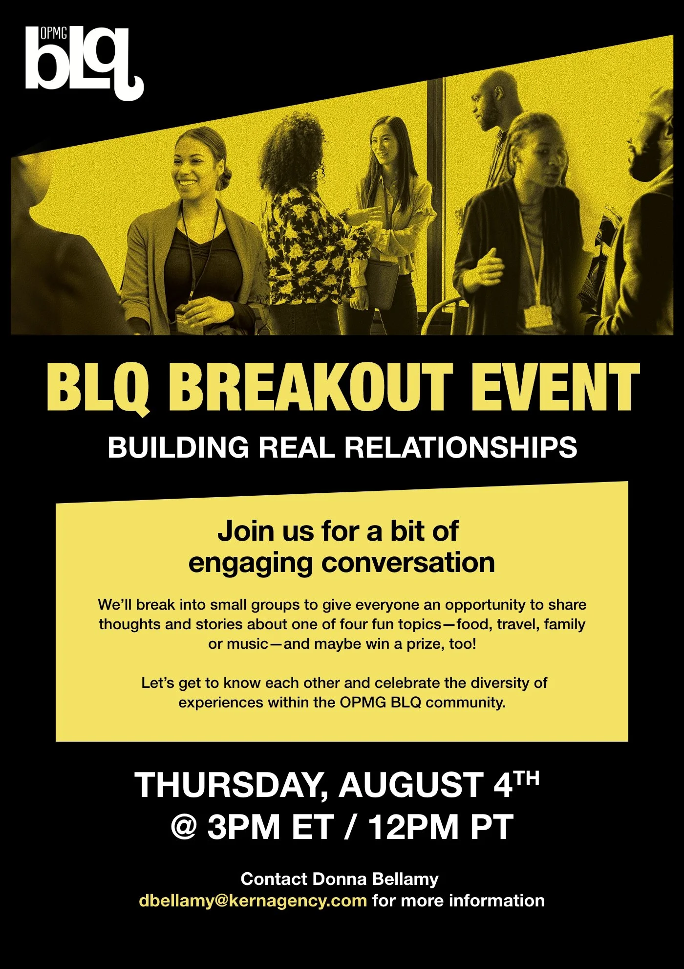 Last week I met with Senior Copywriter, George Wolfe, and did research on wacky holidays for social media. This week that idea was scrapped and working on a poster for BLQ, an employee resource group for black employees and allies in Omnicom agencies.